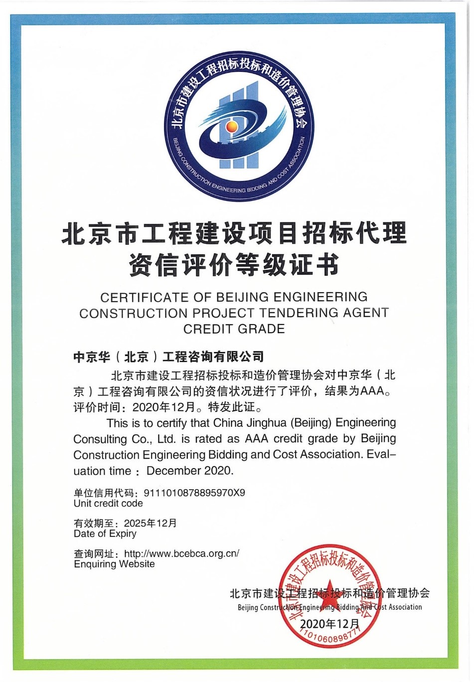 米兰体育(milan sports)APP官方正版官网荣获北京市招标代理企业3A资信评价等级证书